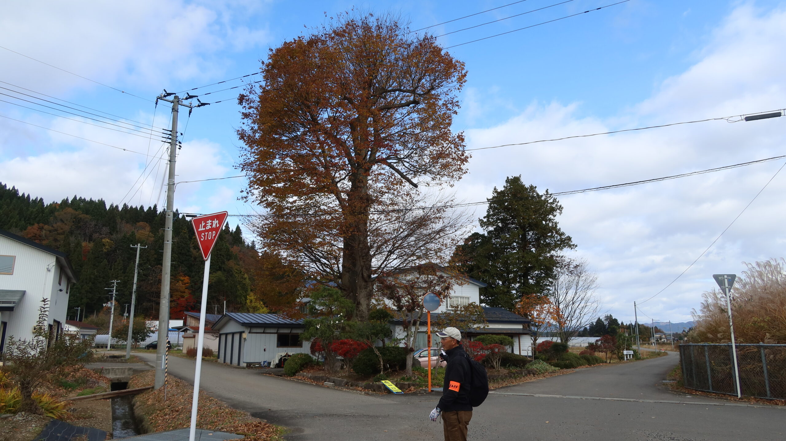 例例年であればみぞれ空もある降雪期に入る頃なので、ファミリー層が回れるようなコース範囲を心がけました。連日続いた曇天・雨天が一転当日は好天。早朝開始時刻のずっと前から参加者が参集していました。